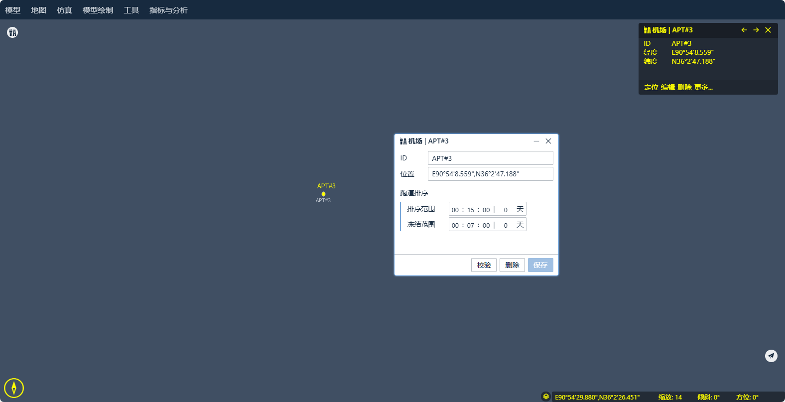 选中已创建的机场点后,您可以通过以下方式管理它: